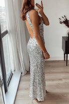 Shine bright at any event with the Sleeveless Open Back Sequin Maxi Dress. Featuring sparkling sequins and a daring open back, this dress blends glamour with a touch of allure. Its sleeveless design offers comfort and freedom of movement, making it perfect for cocktail parties, galas, or night outs. Step into effortless elegance and make every moment unforgettable in this stunning maxi dress.
