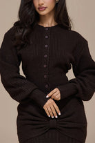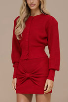 Lantern Sleeves Button Down Ribbed Knit Sweater Cardigan