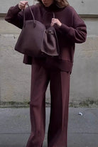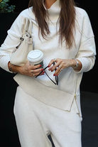 Discover ultimate comfort and style with the Moxidress High Neck Side Zipper Up Sweatshirt and Wide Leg Pants Set.The sleek high-neck sweatshirt includes a practical side zipper for an adjustable fit, while the wide-leg pants offer a flattering, relaxed silhouette. Crafted from soft, durable fabric, this set effortlessly combines casual ease with modern sophistication, perfect for lounging, running errands, or casual outings. Elevate your wardrobe with this versatile set designed to keep you comfortable and stylish throughout the day.