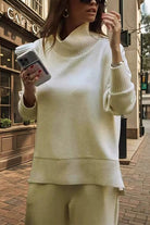 Moxidress High Neck Side Zipper Up Sweatshirt and Wide Leg Pants Set
