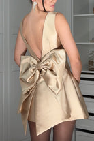 Moxidress Sleeveless Big Bow Open Back Satin Mini Party Dress