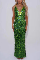 Moxidress V Neck Cut Out Sequin Bodycon Maxi Cami Party Dress