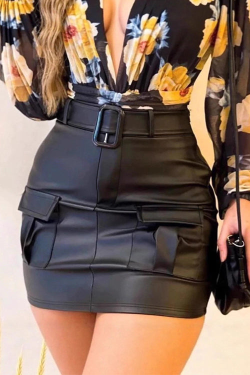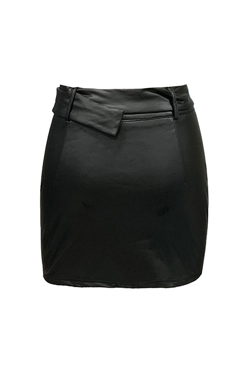Make a powerful impression with this high-rise faux leather mini skirt designed for those who dare to stand out. The bodycon fit accentuates your silhouette while the attached belt adds structure and sophistication to your waistline. Constructed from sleek faux leather, this piece brings an instant edge to any outfit—whether you're heading to a night out or turning heads at a special event. The mini length keeps things playful and modern, while the premium material ensures durability and a polished finish. Style it with a fitted top and bold accessories to unleash your confidence.