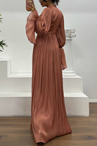Flare Long Sleeves Twist Front Ruched Flowy Maxi Dress