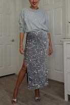 Make a statement with this captivating crewneck pullover sweater that merges contemporary design with luxe embellishment. The signature drop shoulder cut delivers an on-trend silhouette that works beautifully on its own or layered beneath jackets and blazers. Shimmering rhinestone accents catch the light with every movement, transforming a simple sweater into an instant showstopper. Whether you're heading to brunch, the office, or a night out, this versatile piece elevates any ensemble with understated glamour and refined elegance.