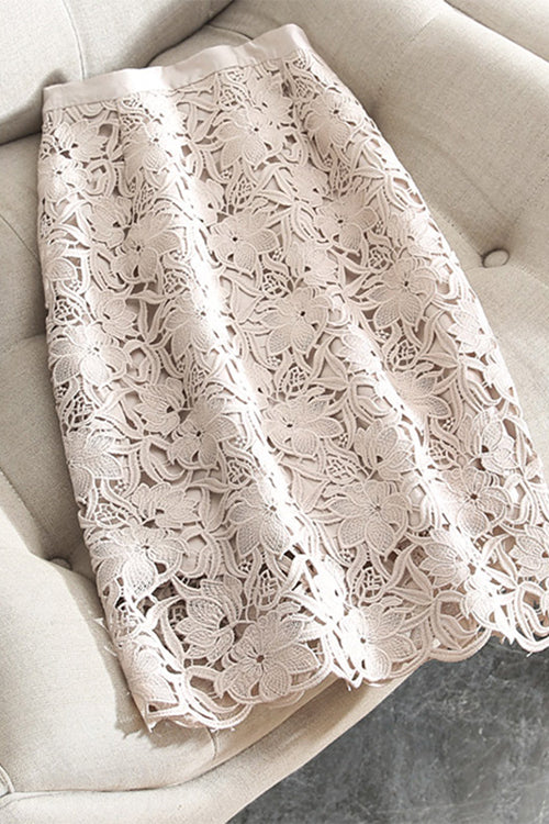 Moxidress High Rise Lace Hollow Out Midi Skirt