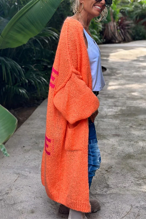 Moxidress Open Front Love and Peace Pattern Long Sweater Cardigan(in 5 Colors)