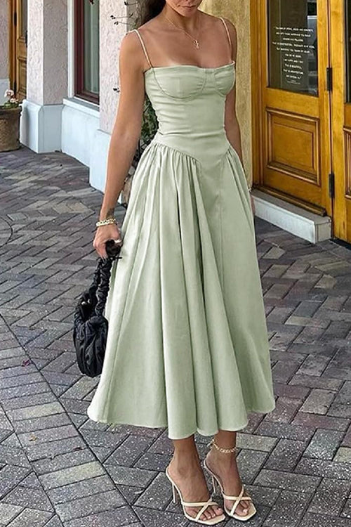 Moxidress Spaghetti Strap Pocketed Corset Swing Midi Dress