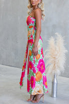 One Shoulder Sleeveless Floral Print Draped Maxi Dress