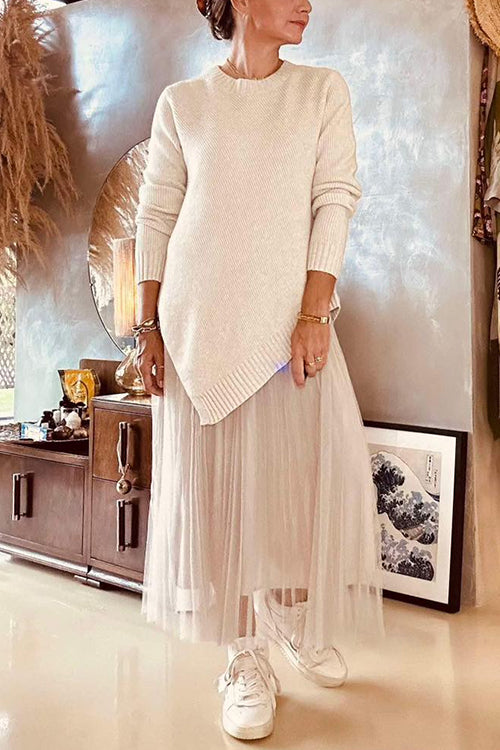 Crewneck Irregular Hem Ribbed Knit Sweater