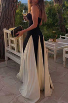 Moxidress Spaghetti Strap Low Cut Color Block Swing Maxi Dress