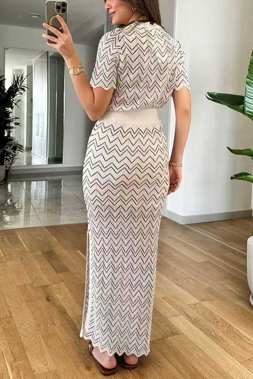 Mockneck Cap Sleeves Printed Slit Maxi Dress
