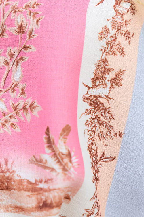 Half Sleeves Button Up Bow Waist Printed Romper