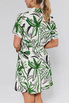 Short Sleeves Button Down Tie Waist Printed Mini Shirt Dress