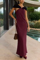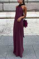 Captivate any room in this exquisite sleeveless maxi dress featuring an artfully draped back that commands attention. The graceful draping detail adds dimension and sophistication, while the floor-length silhouette exudes timeless elegance. Ideal for formal events, galas, and special occasions, this dress delivers both comfort and style. The sleeveless cut keeps you cool throughout the evening, and the flowing fabric moves beautifully with every step. Invest in a show-stopping piece that transforms you into the most elegant guest at any celebration.