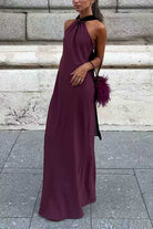 Sleeveless Draped Back Maxi Party Dress