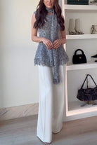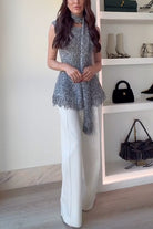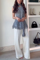 Discover effortless elegance with the Crewneck Sleeveless Fringe Hem Knit Top featuring a stylish matching scarf. Crafted from soft, breathable knit fabric, this top ensures all-day comfort while its sleeveless cut keeps you cool. The fringe hem adds a playful, dynamic touch that enhances your outfit’s charm. The versatile scarf offers multiple styling options, making it a perfect choice for day-to-night wear. Elevate your wardrobe with this chic and adaptable piece designed to highlight your sophisticated style.