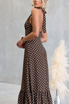 Halter Neck Backless Polka Dot Ruffle Maxi Dress
