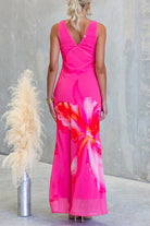 Transform your style with this captivating V-neck sleeveless maxi dress, where botanical beauty meets contemporary elegance. The vibrant floral design adds personality and movement to your silhouette, while the deep V-neckline offers a modern, flattering touch. Engineered without sleeves for maximum comfort during warm seasons, this dress allows you to stay cool while looking polished. The sweeping maxi length creates a graceful, elongated appearance that works beautifully for weddings, garden events, or sophisticated casual outings. Versatile and timeless, it pairs seamlessly with minimal accessories or statement pieces depending on your mood. Crafted for quality and longevity, this dress is the investment piece every woman needs—combining comfort, style, and undeniable confidence in one stunning package.