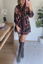 Elevate your wardrobe with this Long Sleeves Button Up Tie Waist Floral Print Ruffle Mini Shirt Dress. Featuring a flattering tie waist that defines your silhouette and delicate ruffle details for a playful touch, this dress blends comfort with feminine charm. The button-up front and long sleeves make it perfect for versatile styling from day to night, while the vibrant floral print adds a fresh, stylish vibe to your look. Ideal for casual outings or special occasions, this mini dress brings effortless elegance wherever you go.