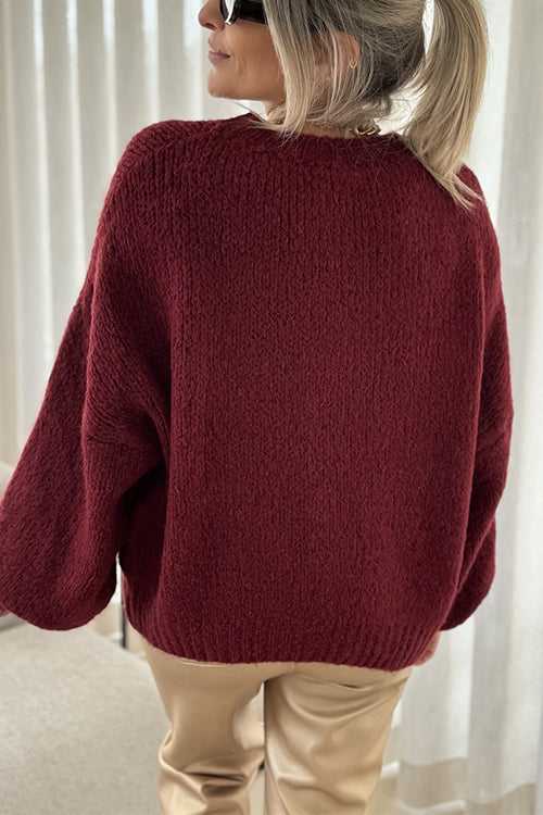 Lantern Sleeves Drop Shoulder Cozy Pullover Sweater
